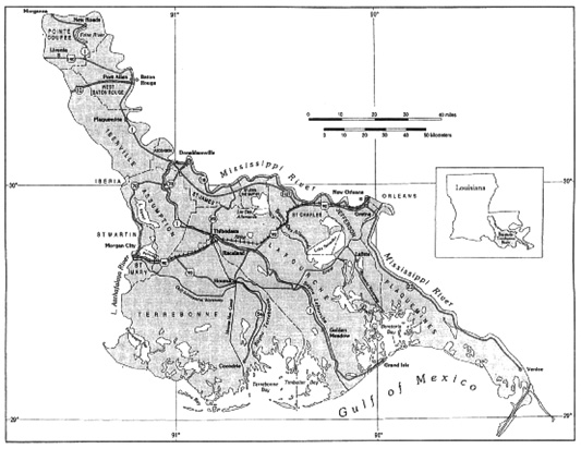 Pearson, C.E. and D.W. Davis. 1995. Cultural adaptation to landforms in the Mississippi River Deltaic Plain, in Geological Society of America Annual Meeting, Guidebook of Geological Excursions #10, C.J. John and W.J. Autin (eds).